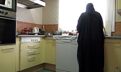 Arab Cougar Step-mother stuck under bed in Eid day morning, While cleaning guest room, Then Stepson help her by ass fucking
