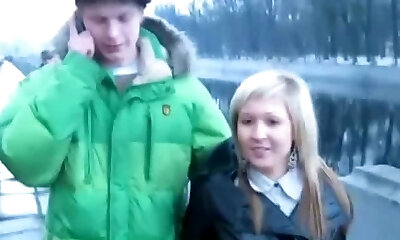 Skinny blonde slut got her pants pulled down for anal fuck-a-thon