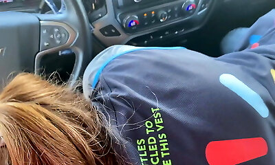 Mischievous big-chested stepmom gives risky public blowjob, jizz