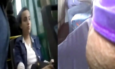 Fatty unexperienced on bus pretends not to see my cock