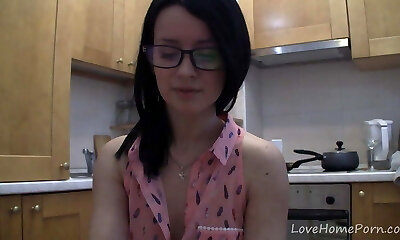 Palatable housewife in glasses feels fantastic railing strong sloppy cock