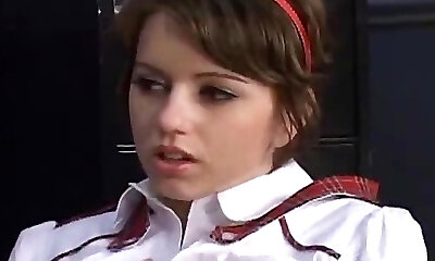 Skinny guy gives a good drilling to two mind-blowing babes in the classroom