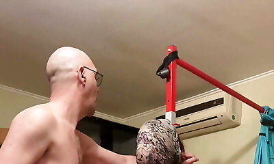 A black-haired pleasured in a machine fuck hardcore in pov