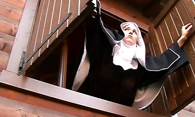 Masturbating mother-in-law gets her donk finger-tickled and fucked while standing doggy style