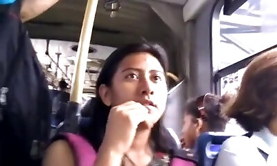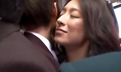 A Married Doll's Globes Stick to a Student's Figure on a Crowded Bus! The Wife's Sexual Dream Is Ignited by the Cock