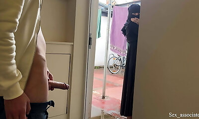 Publick Man Rod Showing. I pull out my dick in front of a young preggie muslim neighbor in niqab and she helped me cum