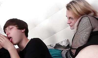 бисекс глубоко глотает большегрудую милфу ммф, трахнутую и вылизанную языком