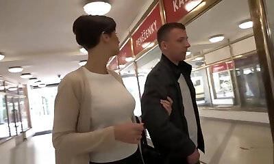 бисексуальный секс втроем в отеле с пухленькой грудастой брюнеткой в красном боди