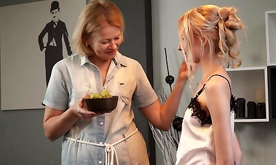 мачеха обучает молодую подружку некоторым сапфическим трюкам