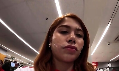 завораживающая рыжеволосая бледная бомба из плоти без лифчика вдыхает мужскую палочку
