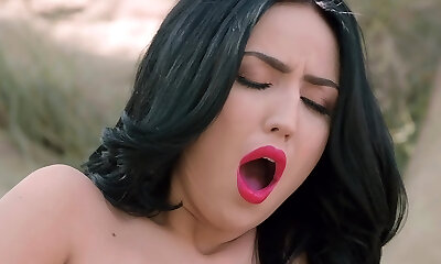 Dark Haired model Jade Baker enjoys to play solo while in the outdoors