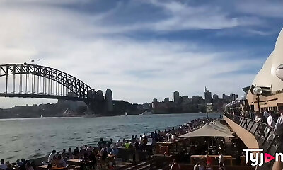 Cute towheaded and pretty brunette get hotly fucked in public