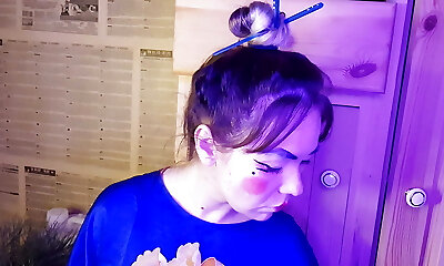 HJ amateur smoking nubile wanks POV oiled cock n talks dirty